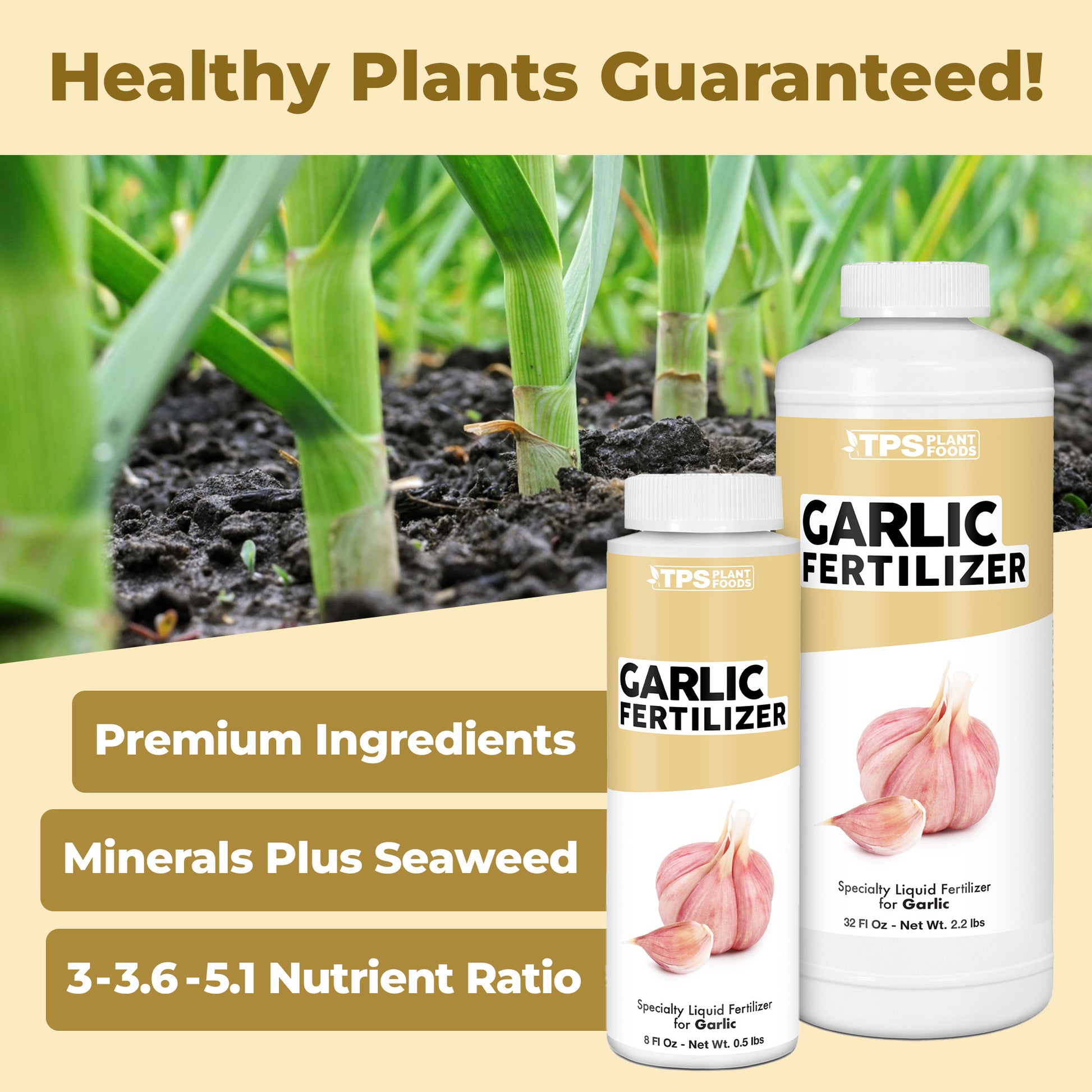 Garlic Plant fertilizer that encourages strong bulb development and healthy growth.